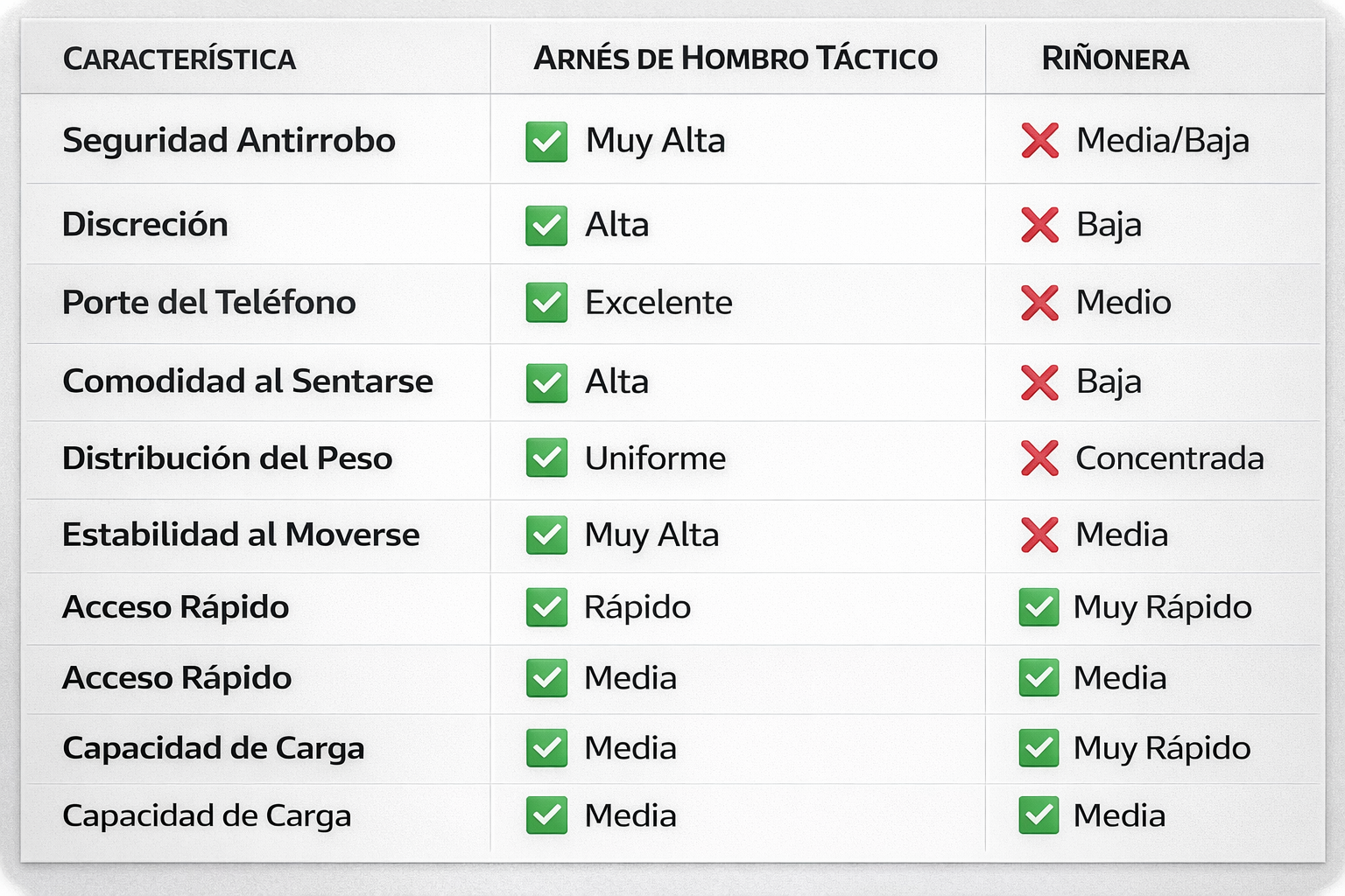Perfecta para el gimnasio, viajes o llevarla oculta bajo la ropa.